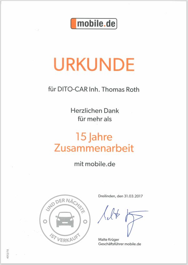 Kontakt per Telefon und vor OrtWer glaubt, dass alle Autohändler Betrüger sind, hat noch nicht mit DITO -CAR zu tun gehabt.Hier entspricht NICHTS dem Klischee. Detaillierte und ehrliche Informationen, zeitnahe Kontakte und Flexibilität bei der Kaufabwicklung machen dieses Autohaus zu einem TOP-Unternehmen, dass ich bedingungslos weiterempfehlen kann.